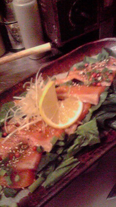 トラウトサーモン熱々ガーリックバターがけ